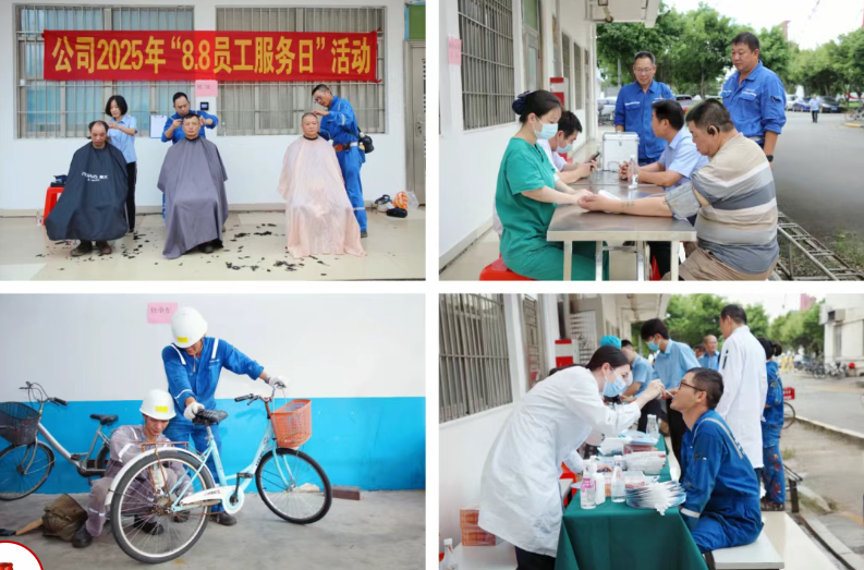 服務日當天,廣船國際所屬文沖修造設置了量血壓、理發、縫補衣服、修理自行車、磨刀具、健康咨詢、口腔義診等多個義務服務項目,以貼心實用的便民舉措為勞務工送去關懷與便利,讓服務日充滿暖心氛圍。